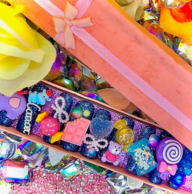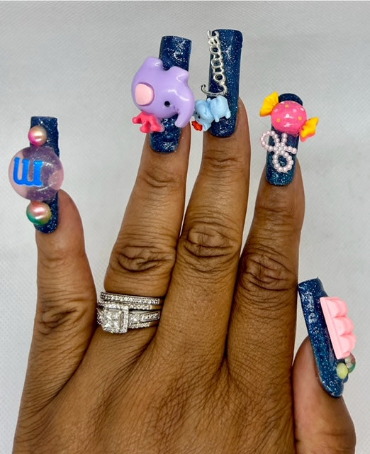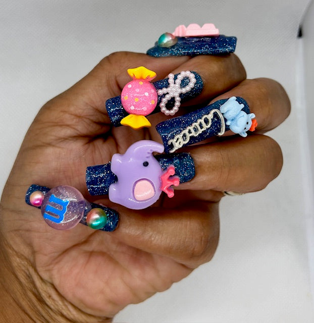 Set shown is a long length and square shape . 100% acrylic press on handmade! Each press on has a thin layer of acrylic plus a gel design.