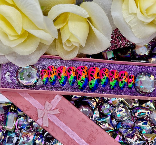 Set shown is an short length and claw shape. 100% acrylic press on handmade! Each press on has a thin layer of acrylic plus a gel design.
